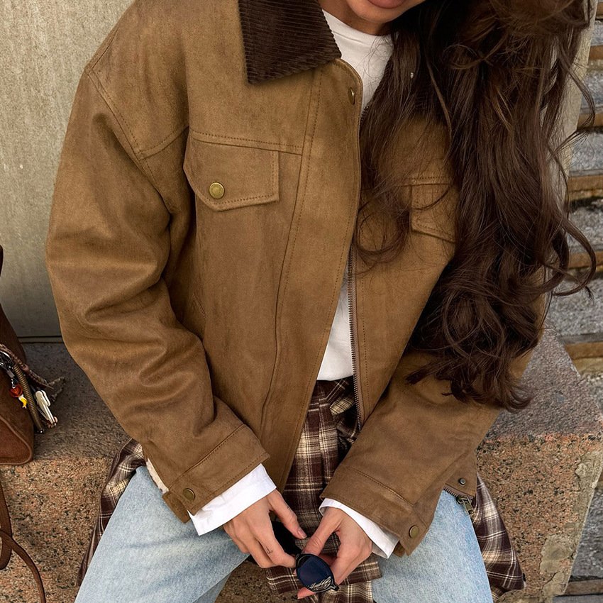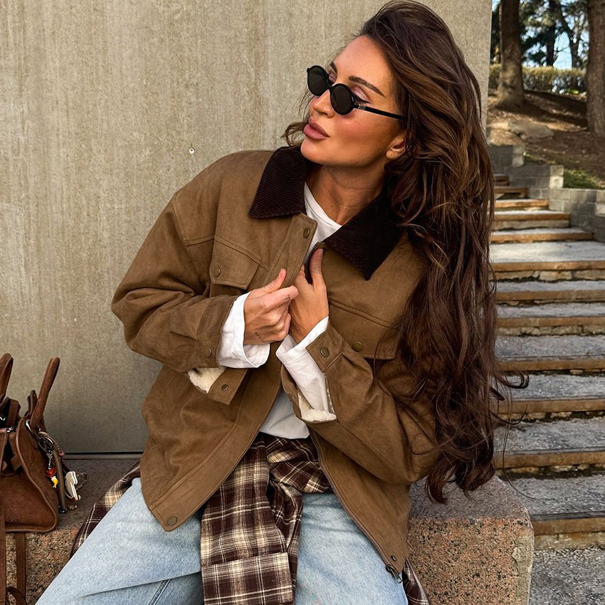 Clothes length: Mid-length (65c Sleeve length: long sleeves color: Brown, weight: 780G, composition: 96% polyester, 4% spandex, support size: S,,L style type: Temperament commuting placket: Zipper style type: Elegant temperament Whether: Yes Main downstream sales areas 1: Main downstream sales areas 2: