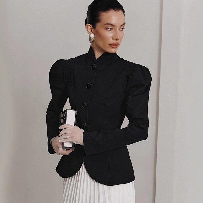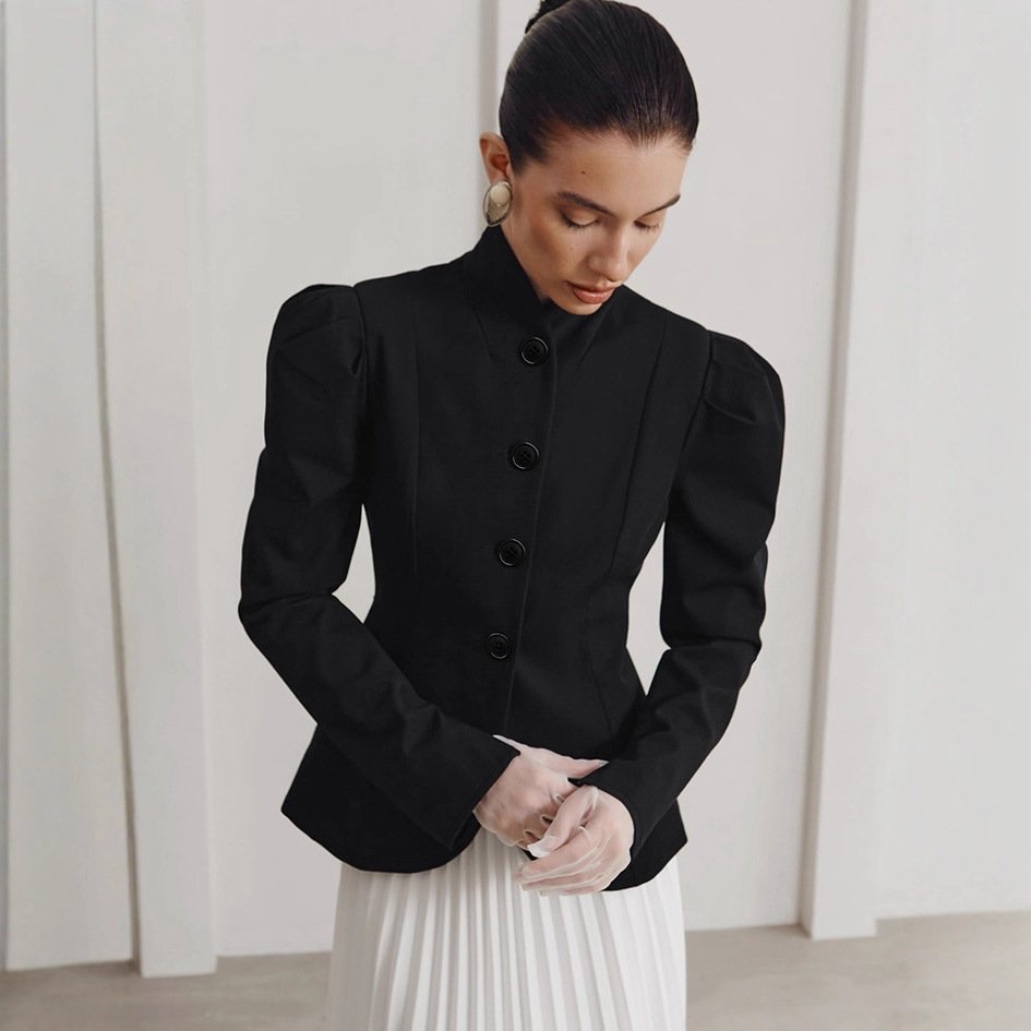Clothes length: Mid-length (65c Sleeve type: puff sleeves Popular elements: buttons year season: Winter 2025 color: Black, weight: 485G, composition: 95% polyester; 5% spandex, pre-sale, reservation supported size: S,,L style type: Temperament commuting Type: Hang tag: No tag Main downstream sales areas 1: Applicable body type: Universal placket: Single row with multiple buttons Whether to wear a hat: No style type: Elegant temperament Whether: Yes Get the bid: No collar bid Applicable people: Universal Main downstream sales areas 2: