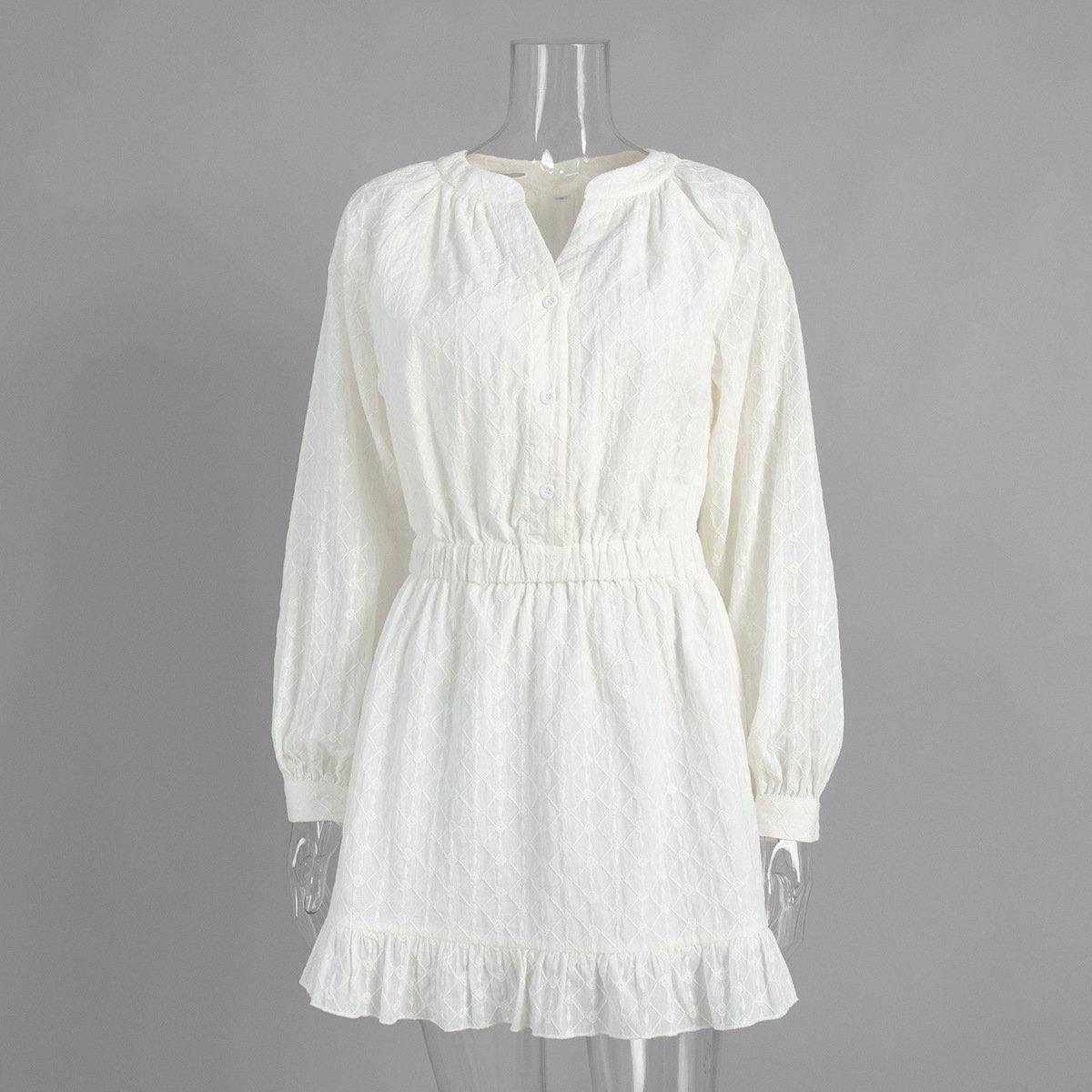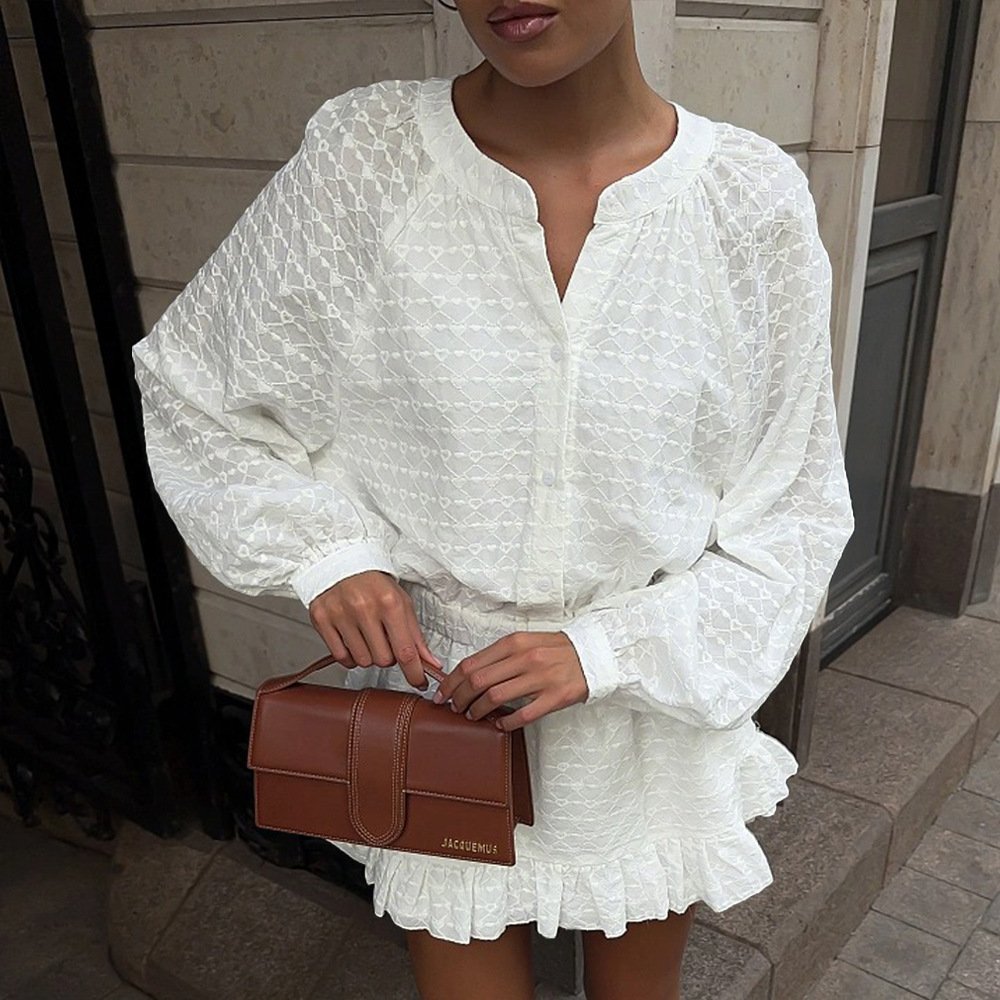 Embroidered short dress with love pattern raglan sleeves and waisted skirt dressEmbroidered short dress with love pattern raglan sleeves and waisted skirt dress