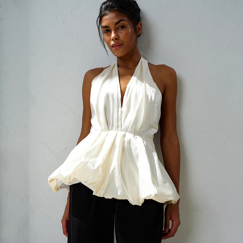 Clothes length: Ordinary (50c Popular elements: Backless Version: Slim fit Item number: BX2125F pattern: year season: Winter 2025 color: Apricot color, weight: 365G, composition: 90% polyester fiber, 10% spandex, support size: S,,L Main fabric ingredient content: 90% (inclusive) 95% (exclusive) style type: Temperament commuting Type: Hang tag: No tag Shoulder strap style: halter neck strap Main downstream sales areas 1: Applicable season: ,,autumn style: Commuting style style type: Elegant temperament Whether: Yes Get the bid: No collar bid Main fabric ingredient 2 content: Below 30% Main fabric composition 2: spandex Main downstream sales areas 2: