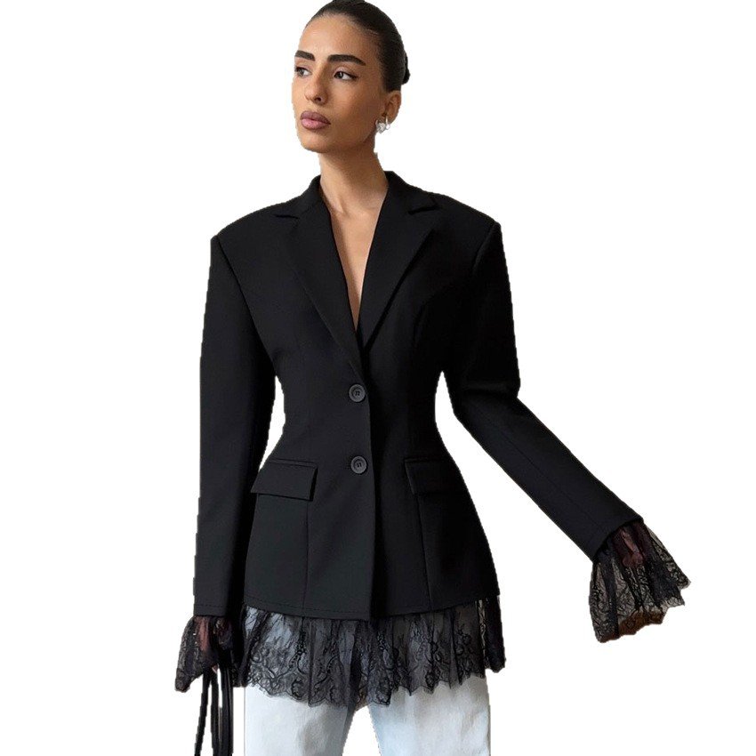 High-end waist slim-fitting lace splicing suit jacket with stylish design