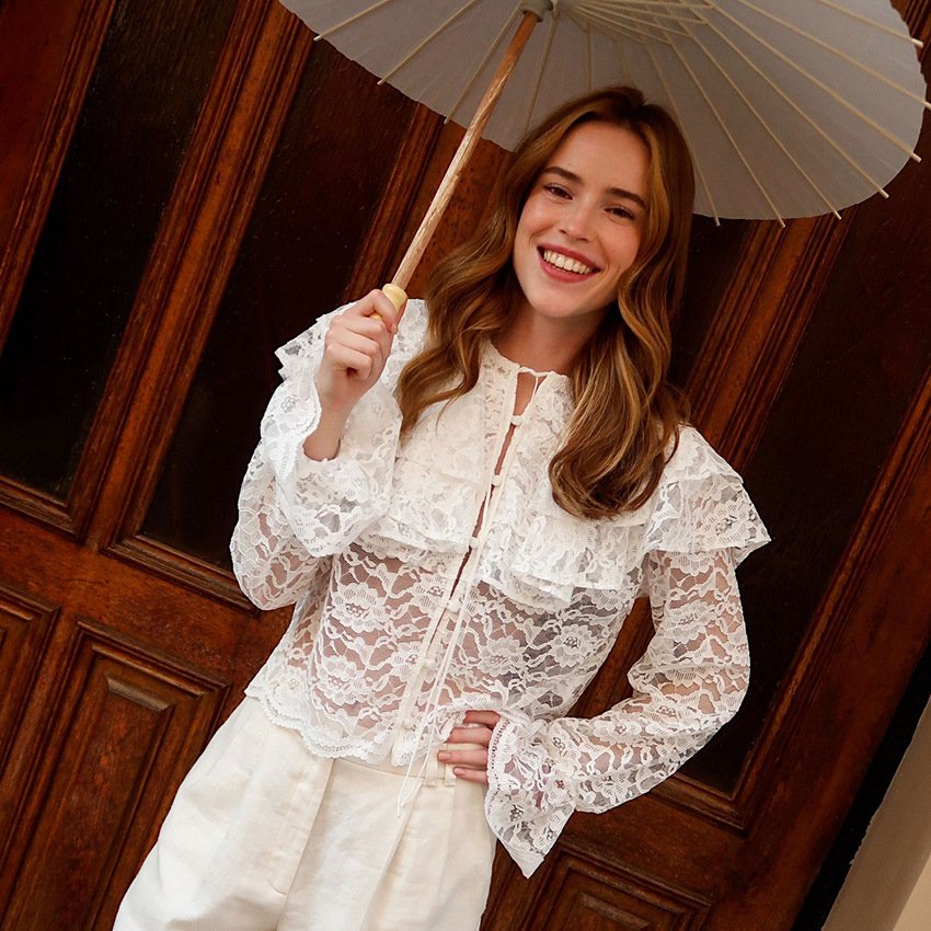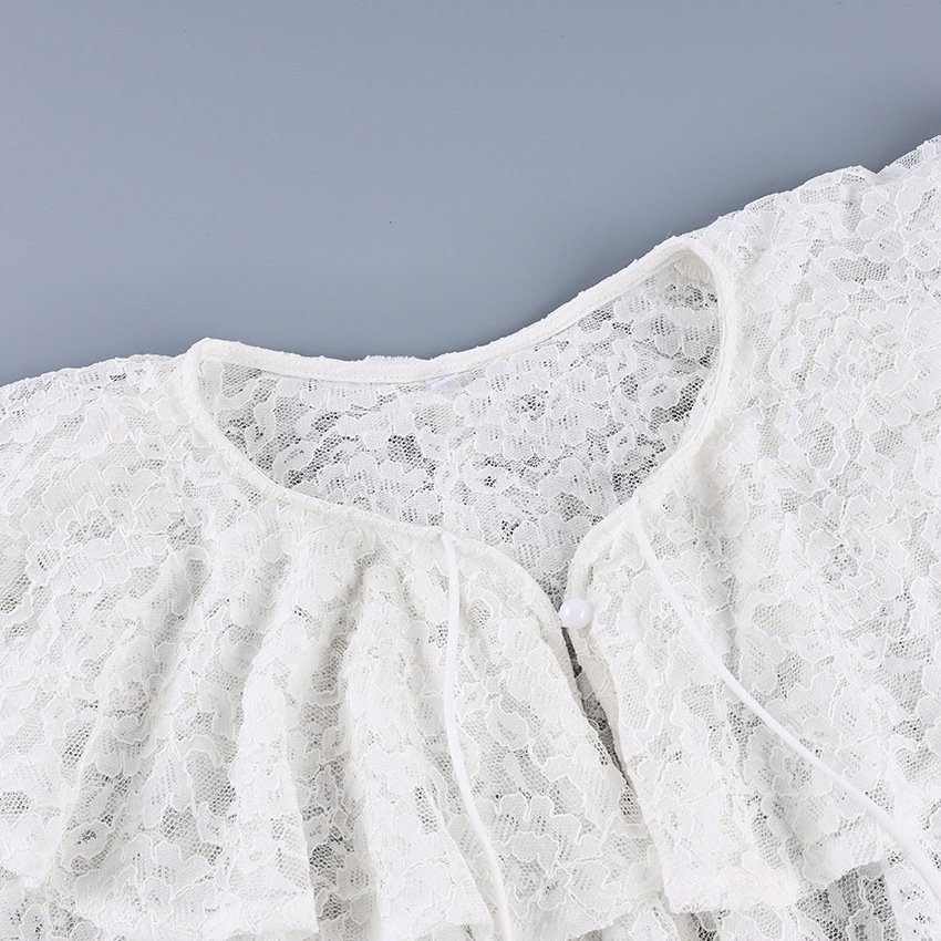 Clothes length: Short (40c Collar type: round neck Sleeve type: Regular sleeve Popular elements: Lace, lace, ruffles, see-through year season: Fall 2025 color: White, weight: 210G, composition: 60% polyester fiber, 40% brocade, support size: S,,L style type: Temperament commuting Main fabric ingredient content: 50% (inclusive) 70% (exclusive) Type: Hang tag: No tag Main downstream sales areas 1: Elasticity level: Micro elasticity Applicable body type: Universal placket: single breasted style type: Elegant temperament Whether: Yes Get the bid: No collar bid Main fabric ingredient 2 content: 30% (inclusive) 50% (exclusive) Main downstream sales areas 2:
