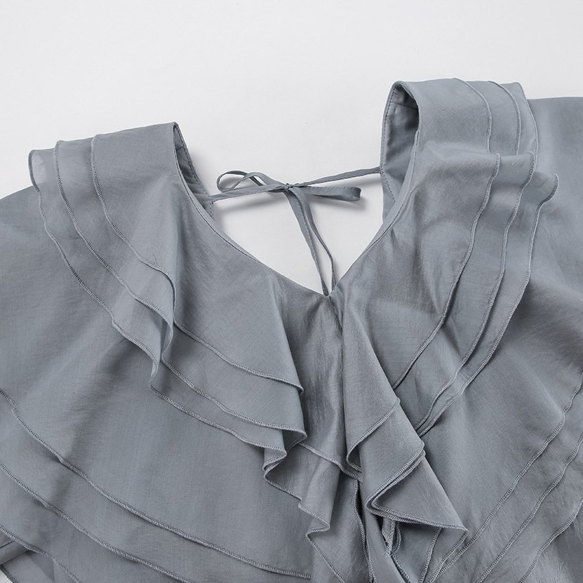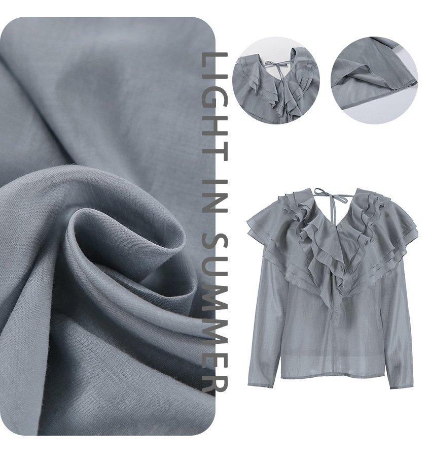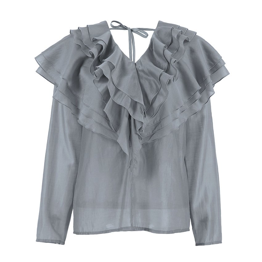 Niche collar ruffled backless long-sleeved shirt with casual and versatile styleNiche collar ruffled backless long-sleeved shirt with casual and versatile style