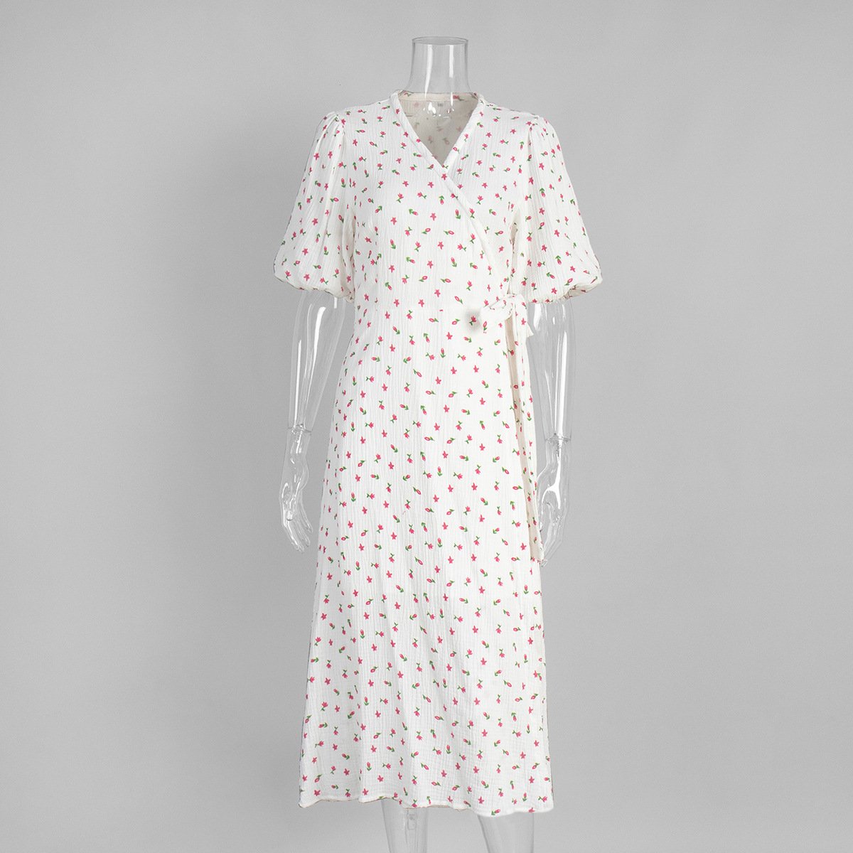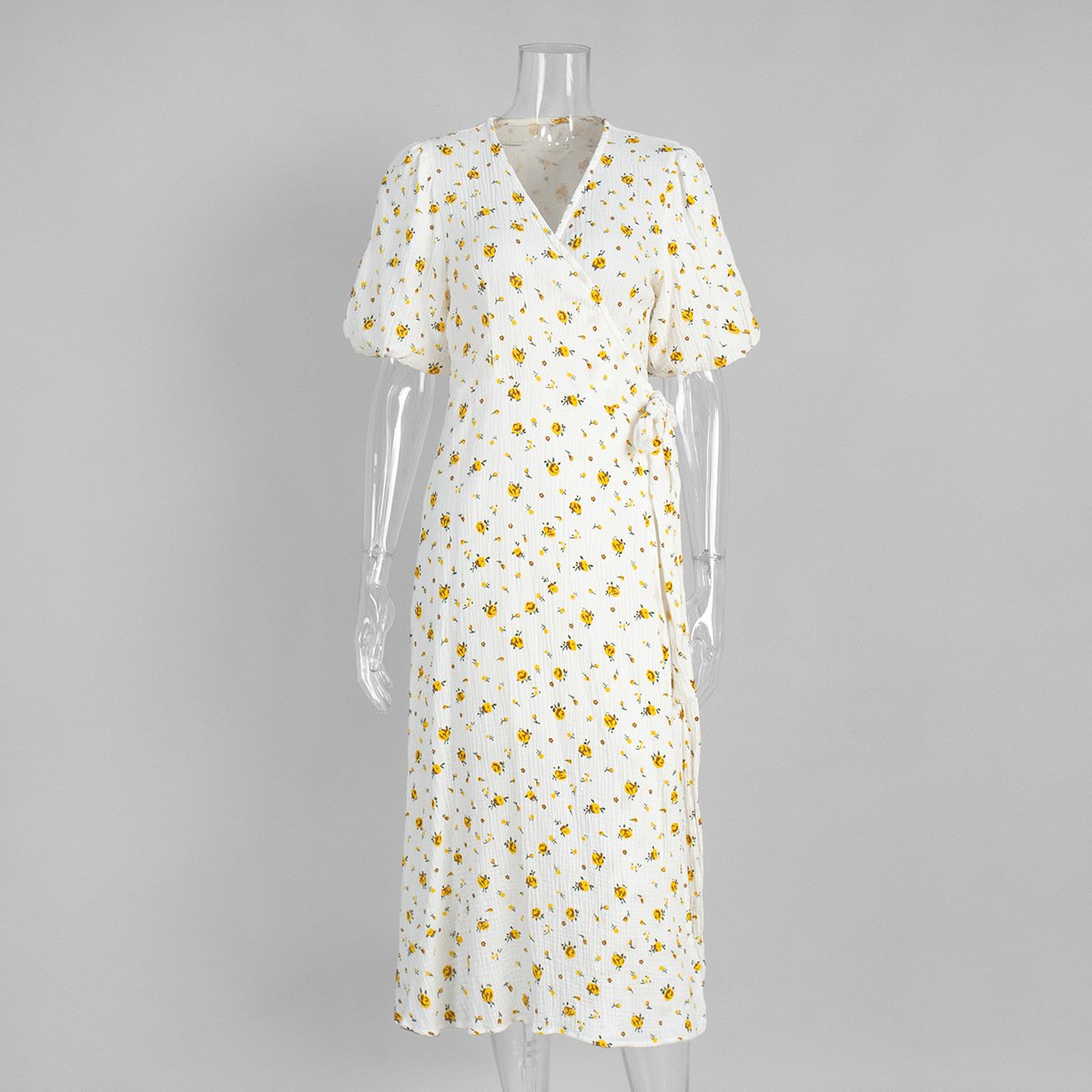 Pure cotton printed dress women's puff sleeve collar lace up short sleeve printed dressPure cotton printed dress women’s puff sleeve collar lace up short sleeve printed dress