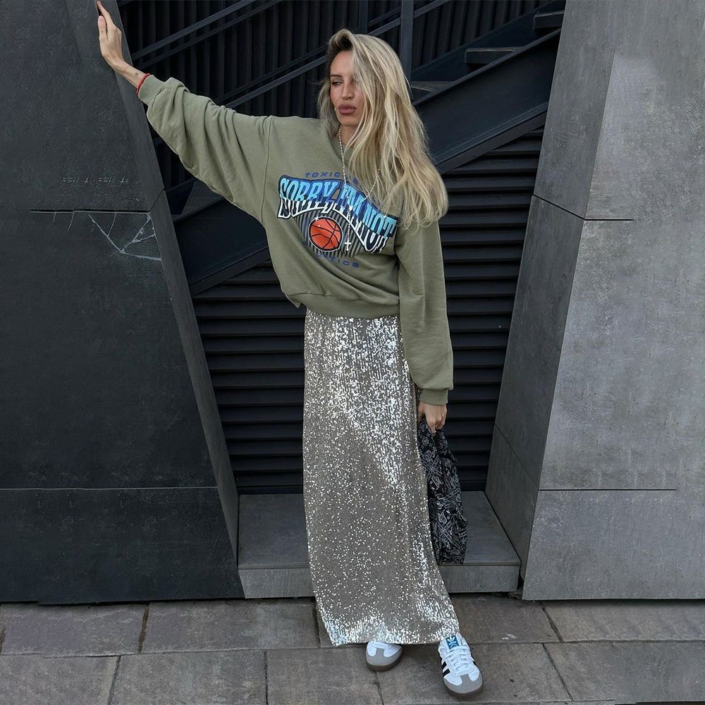 Be the first to review “Sequined skirt for women street fashion long sexy hottie high waist”