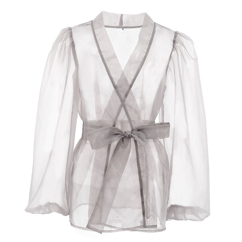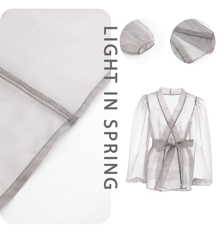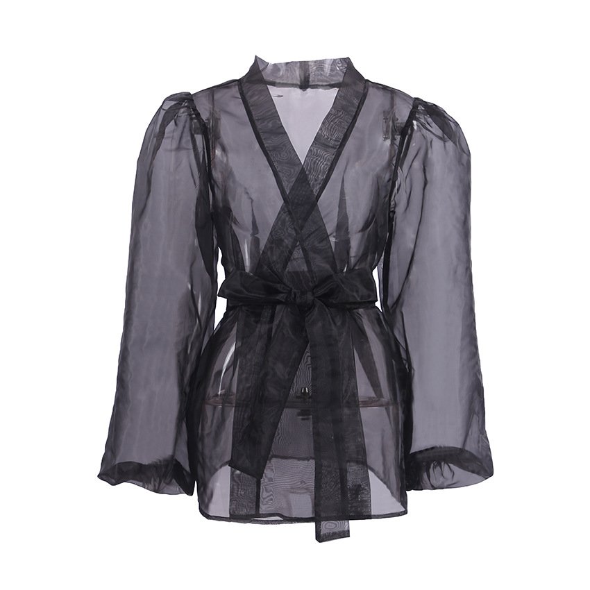Sexy black see-through mesh shirt jacket for women niche long-sleeved shirt blouse layeringSexy black see-through mesh shirt jacket for women niche long-sleeved shirt blouse layering