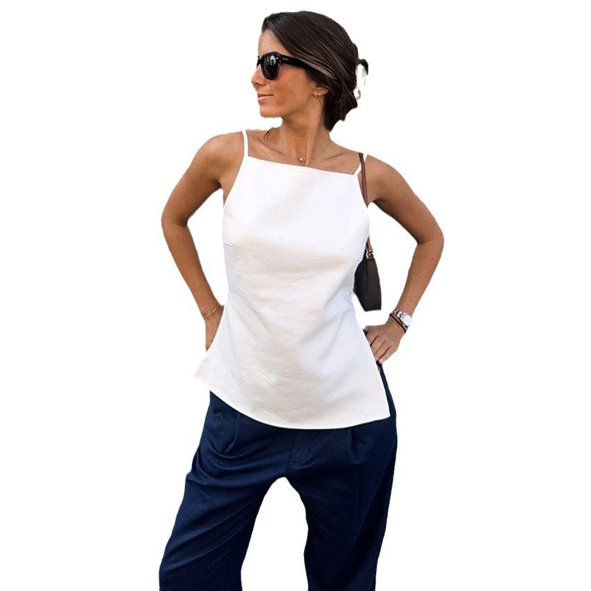 Clothes length: Ordinary (50c Popular elements: Backless Version: regular Item number: BX1898 pattern: solid color year season: year color: White, black, composition: cotton 100%, weight: 80g, size: S,,L Main fabric ingredient content: 95% and above style: Commuting style style type: Temperament commuting style type: sexy hottie Whether: Yes Shoulder strap style: double root Main downstream sales areas 1: Main downstream sales areas 2: